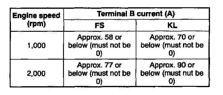 If generator terminal B current will not increase, disassemble and inspect the generator.