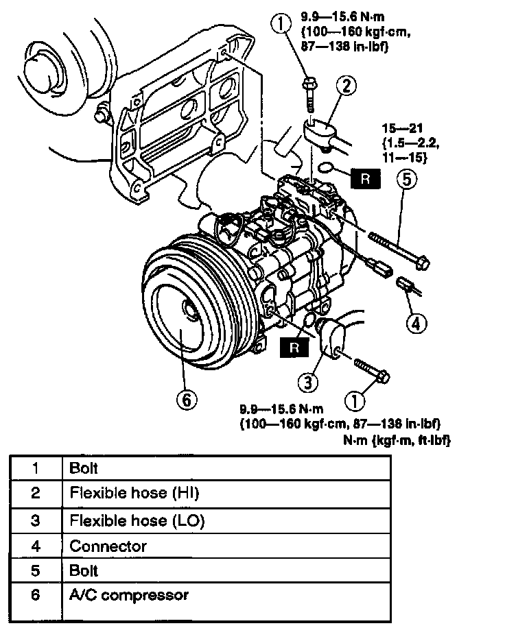 A/C COMPRESSOR REMOVAL/INSTALLATION1. Discharge the refrigerant from the system.