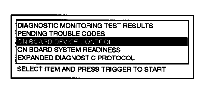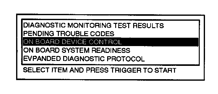 7. Turn the menu dial clockwise or counterclockwise to highlight the "ON BOARD DEVICE CONTROL" and press the TRIGGER.