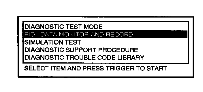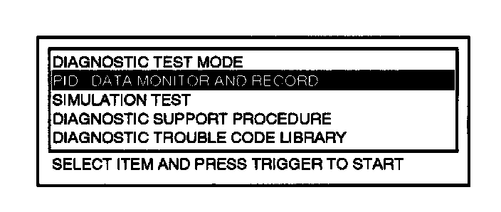 12. Select "PID/DATA MONITOR AND RECORD" and press the TRIGGER.