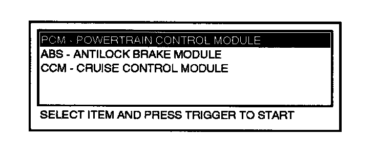 10. Select "PCM - POWERTRAIN CONTROL MODULE" and press the TRIGGER.