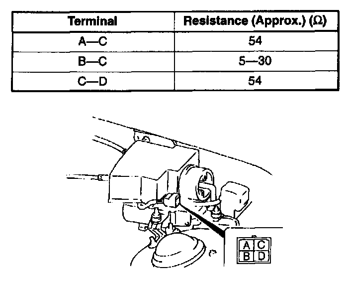 2. Measure the resistance between the cruise actuator terminals.