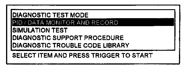 3. Select "PID/DATA MONITOR AND RECORD" and press the TRIGGER.