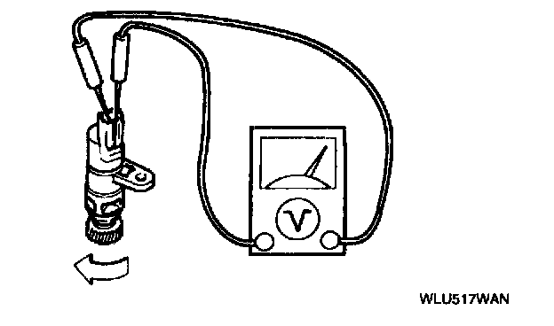 2. Measure the voltage between the terminals of the vehicle speedometer sensor while rotating the driven near.