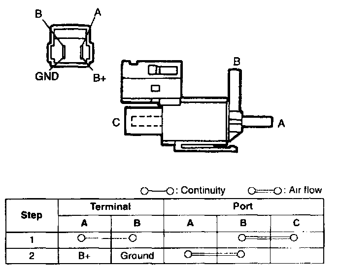 Inspect air flow between ports of the solenoid valve.