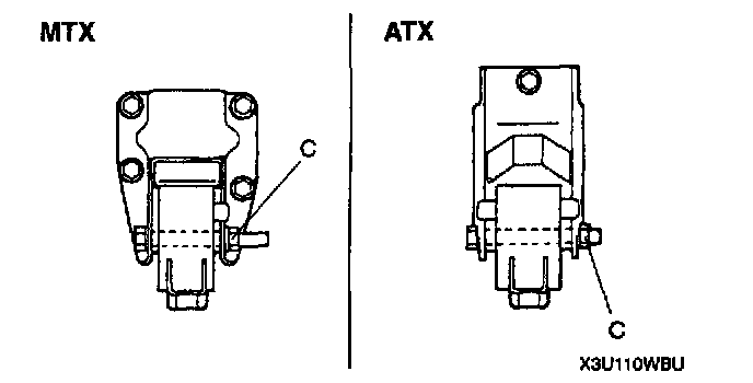 3. Loosen the No.2 engine mount bolt C.