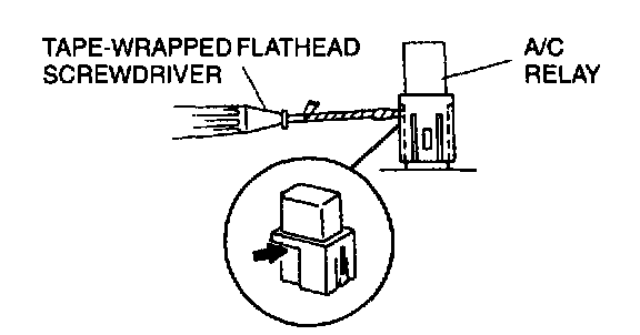 2. Push a tape-wrapped flathead screwdriver downward to remove the A/C relay.