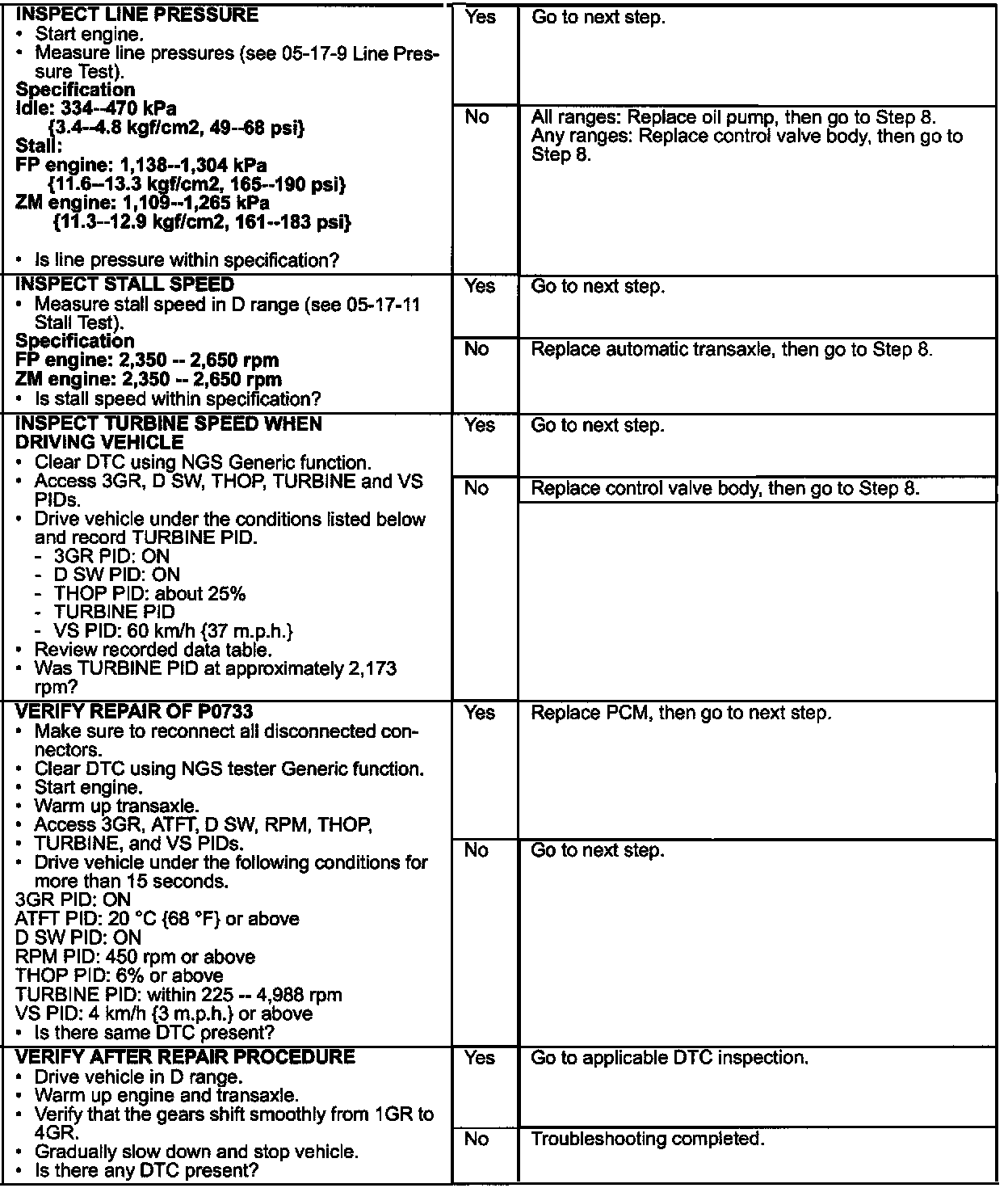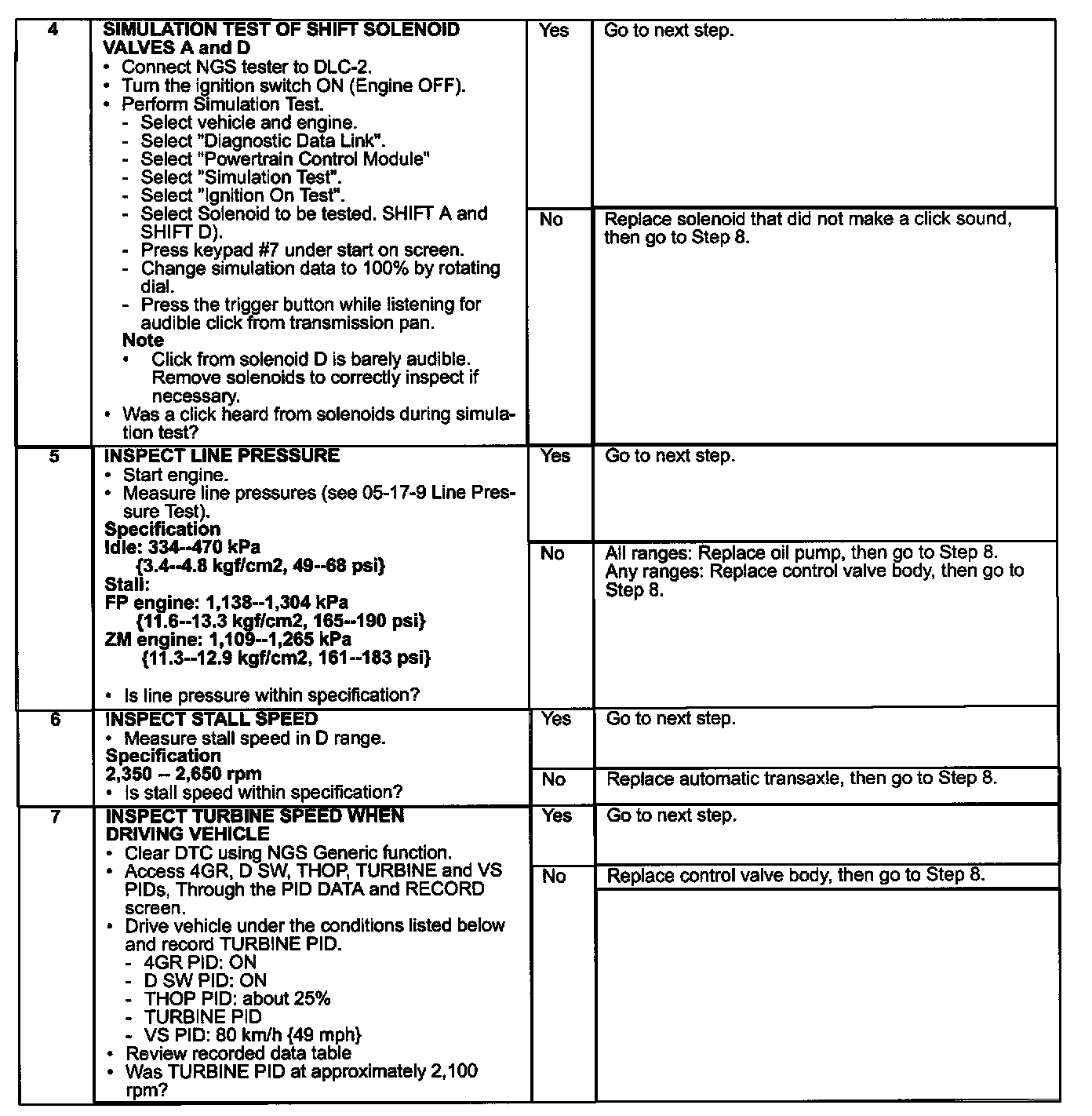 3. Erase DTC and perform the following drive mode to identify actual cause (i.e. shift solenoid, control valve, etc.).