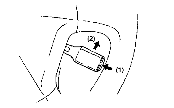 5. Turn and hold the RESUME/ACCEL switch on for at least 3 seconds (2). The cruise set indicator light will illuminate for 3 seconds, and then go off for at least 2 seconds. Thus, the condition detection mode begins.