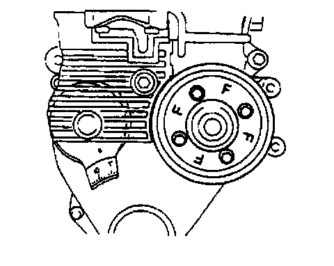 - Install the water pump pulley by facing the "F" marks outward.