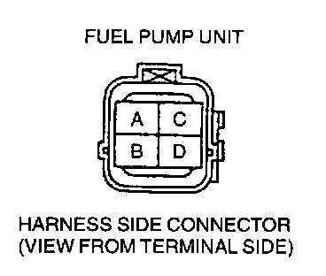 6. Measure the voltage at harness side fuel pump connector terminal B.