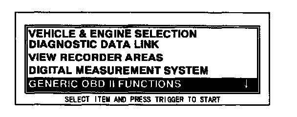 2. Move the cursor to GENERIC OBD II FUNCTIONS. Press the trigger key to enter this selection.