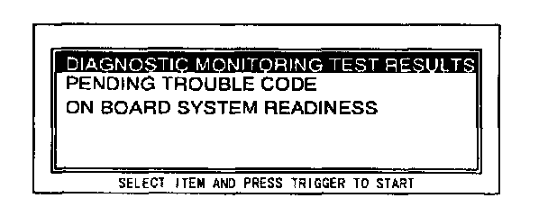 4. Turn the menu dial clockwise to scroll the screen. Move the cursor to DIAGNOSTIC MONITORING TEST RESULTS. Press the trigger key to enter this selection.