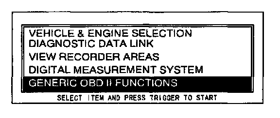 2. Move the cursor to GENERIC OBD II FUNCTIONS. Press the trigger key to enter this selection.