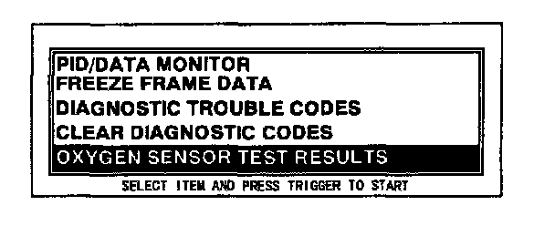 4. Move the cursor to OXYGEN SENSOR TEST RESULTS. Press the trigger key to enter this selection.