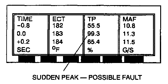 4. Table format: Scroll through the PID data while analyzing the information. Look for sudden drops or peaks in the values.