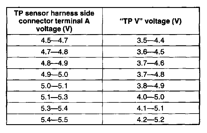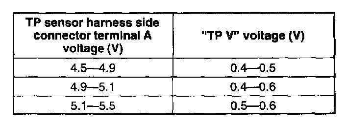 7. When the throttle valve is at the WOT, verify that the "TP volts" voltage is with in the specification.