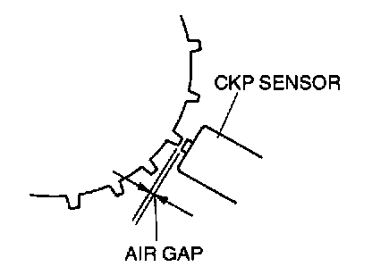 2. Measure the air gap between the plate teeth and the CKP sensor using a feeler gauge.
