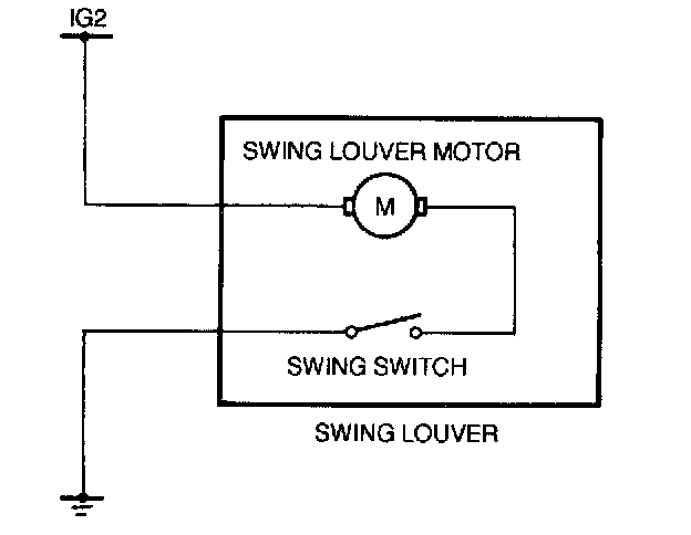The current flows to the swing louver motor when the switch is turned on and the motor operates.