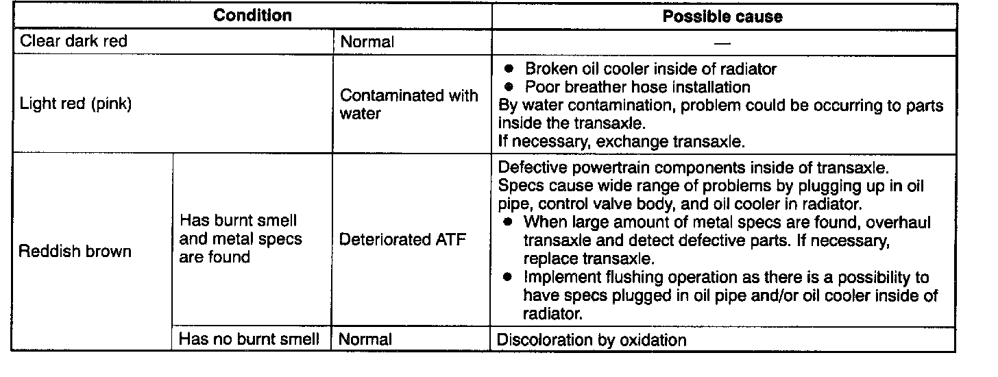 AUTOMATIC TRANSAXLE FLUID (ATF) INSPECTION [LA4A-EL]ATF Condition Inspection