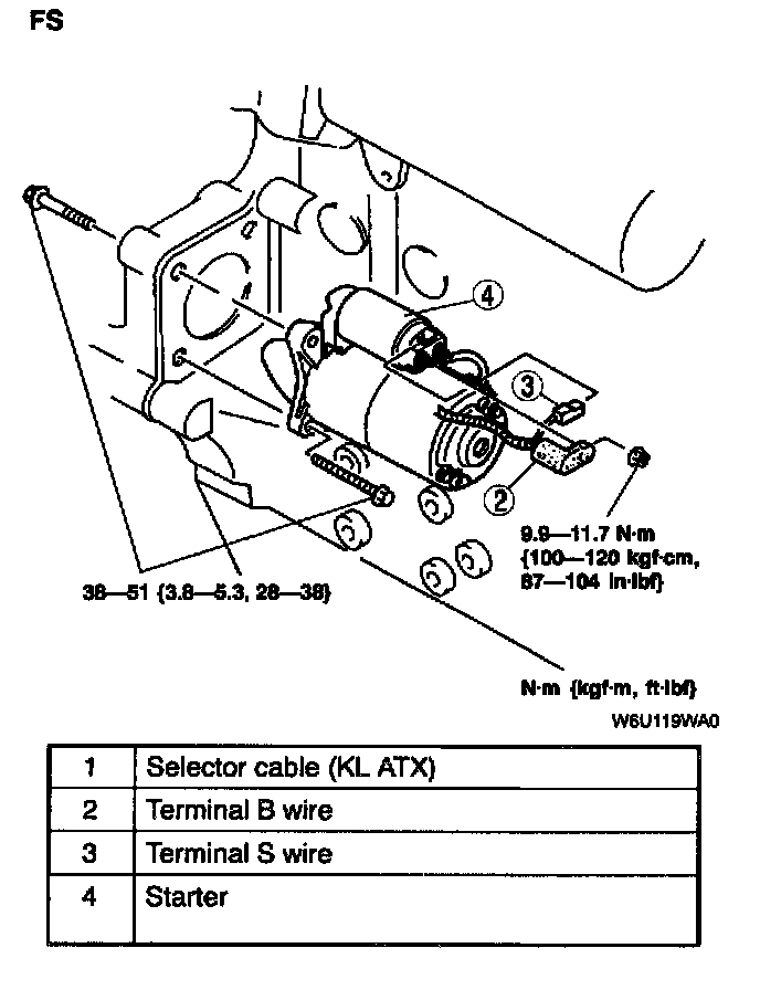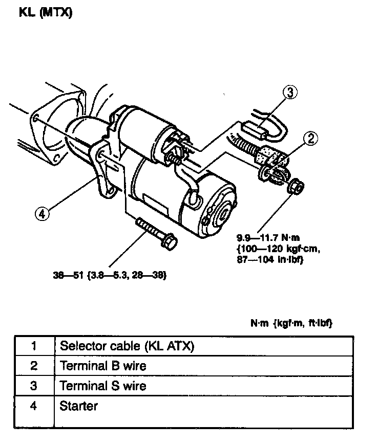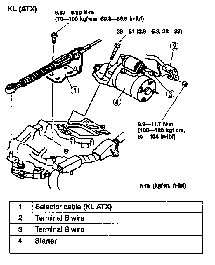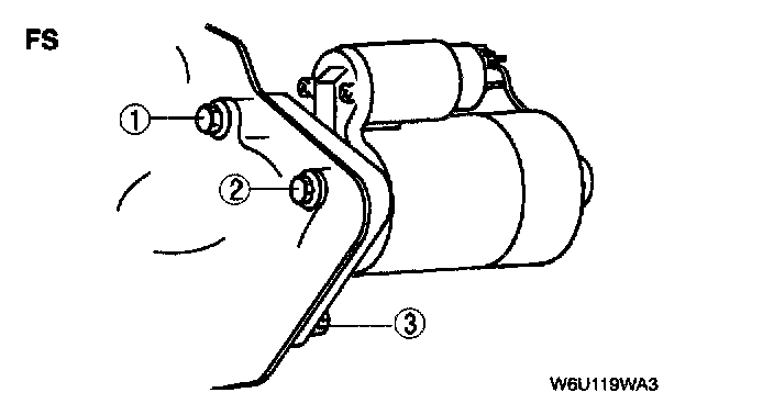 - Tighten the starter fitting bolts in the order shown.