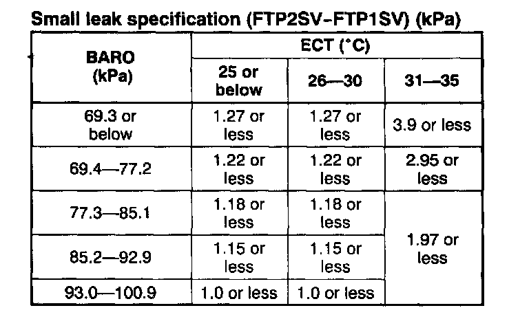 Small Leak Specification (FTP2SV - FTP1SV) (kPa):