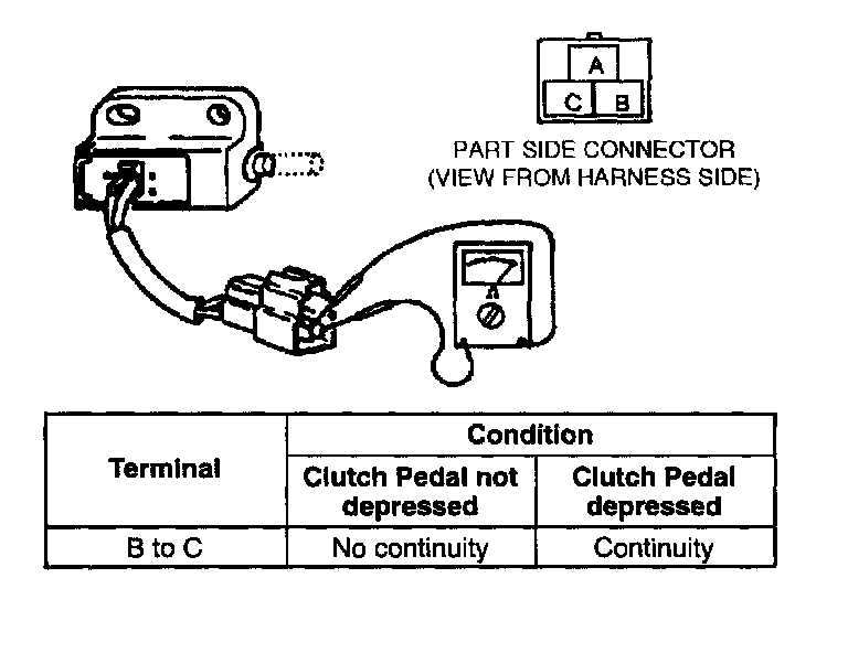 Inspect for continuity between terminals of the starter interlock switch using an ohmmeter.