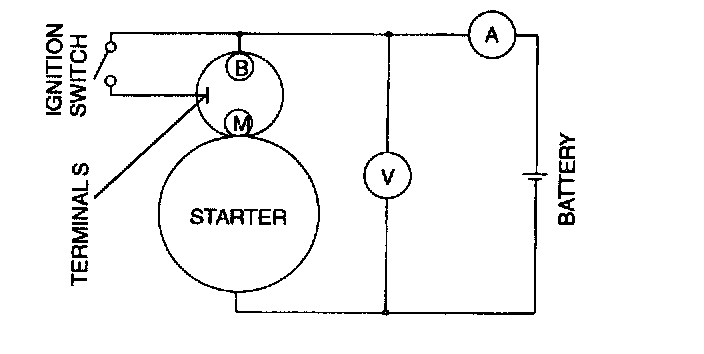- Measure the voltage at terminals S and B when the ignition switch is in the START position.