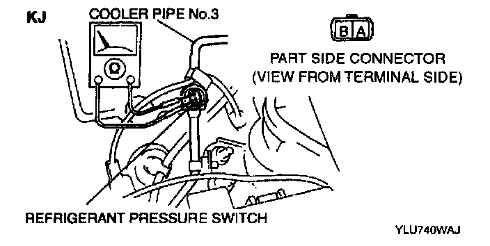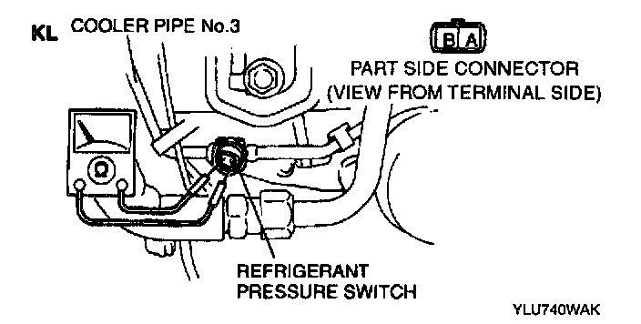 4. Inspect for continuity between the terminals of refrigerant pressure switch.