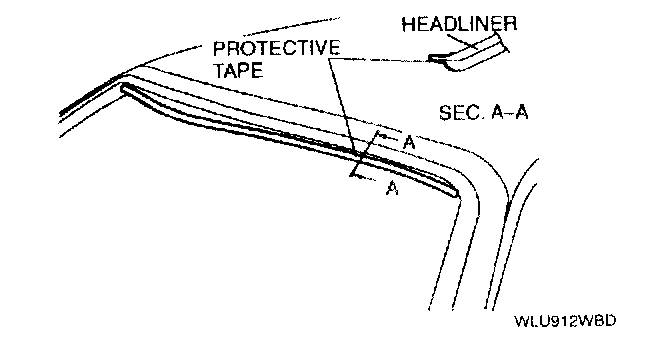 7. Apply protective tape along the rear edge of the headliner to protect it from damage.
