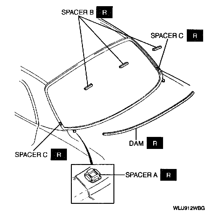- If a leak is found, wipe the water off well and remove the rear window glass. Install the rear window glass.