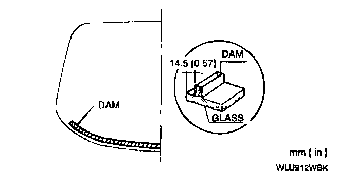 3. Securely bond a new dam along the circumference of the glass 14.5 mm {0.57 in} from the edge. Allow it to dry completely.