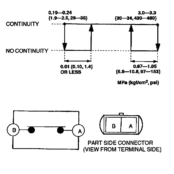 3. Verify the high-pressure side reading of the manifold gauge and continuity between the terminals of the refrigerant pressure switch.