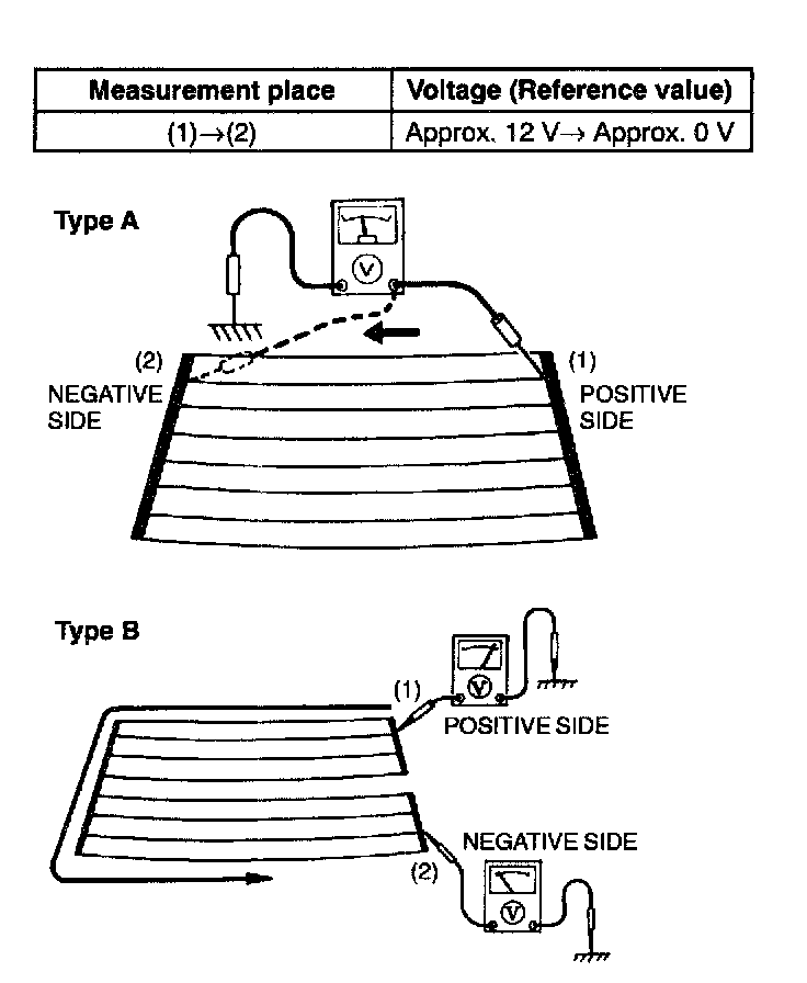 CAUTION: Directly touching the rear window defroster filament with the lead of the circuit tester will damage it. Wrap aluminum foil around the end of the lead and test the filament by touching it with the foil.