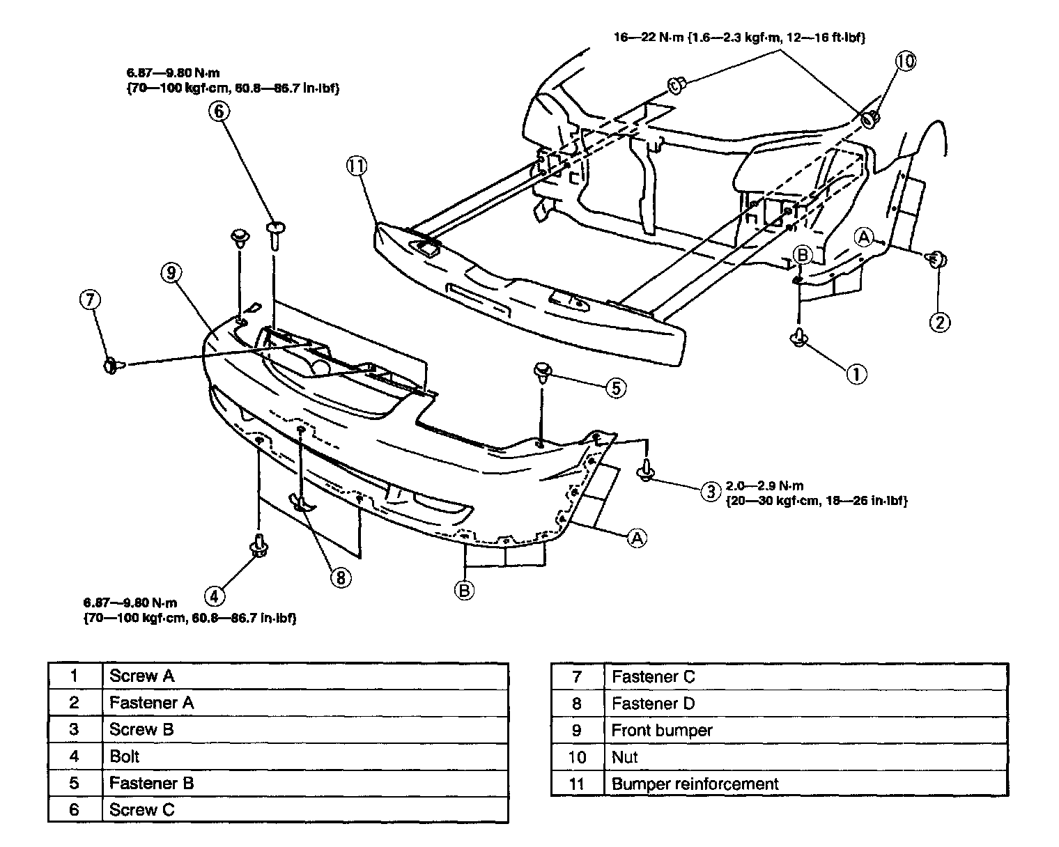 3. To remove the bumper reinforcement, remove the front bumper and washer tank, then remove the bumper reinforcement installation nuts.