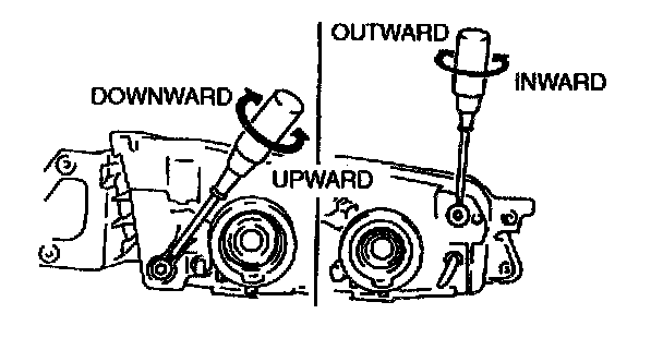 NOTE: If the adjusting screws are tightened first, then loosened, they will continue to loosen when the vehicle is in motion and may cause the headlights to become misaligned.