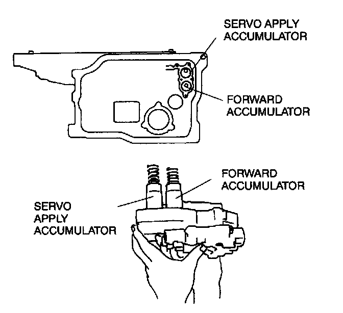 1. Install the accumulator springs and accumulator into the transaxle case.