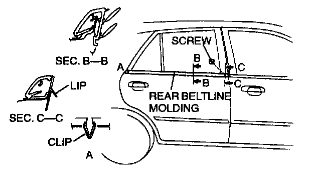 Pull the rear beltline molding up, then disengage clip A.
