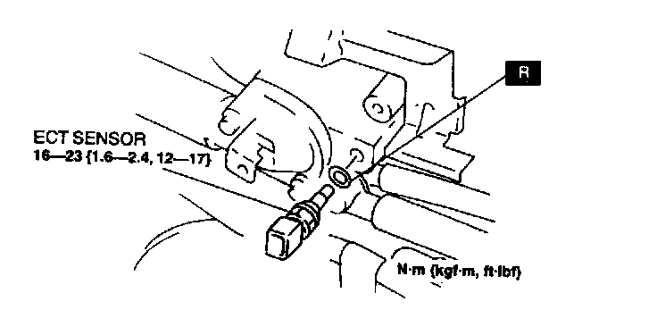 WARNING: When the engine is hot, It can badly burn. Turn off the engine and wait until it is cool before removing or installing the ECT sensor.1. Drain the engine coolant. (See COOLING SYSTEM SERVICE WARNINGS.) (See ENGINE COOLANT REPLACEMENT.)