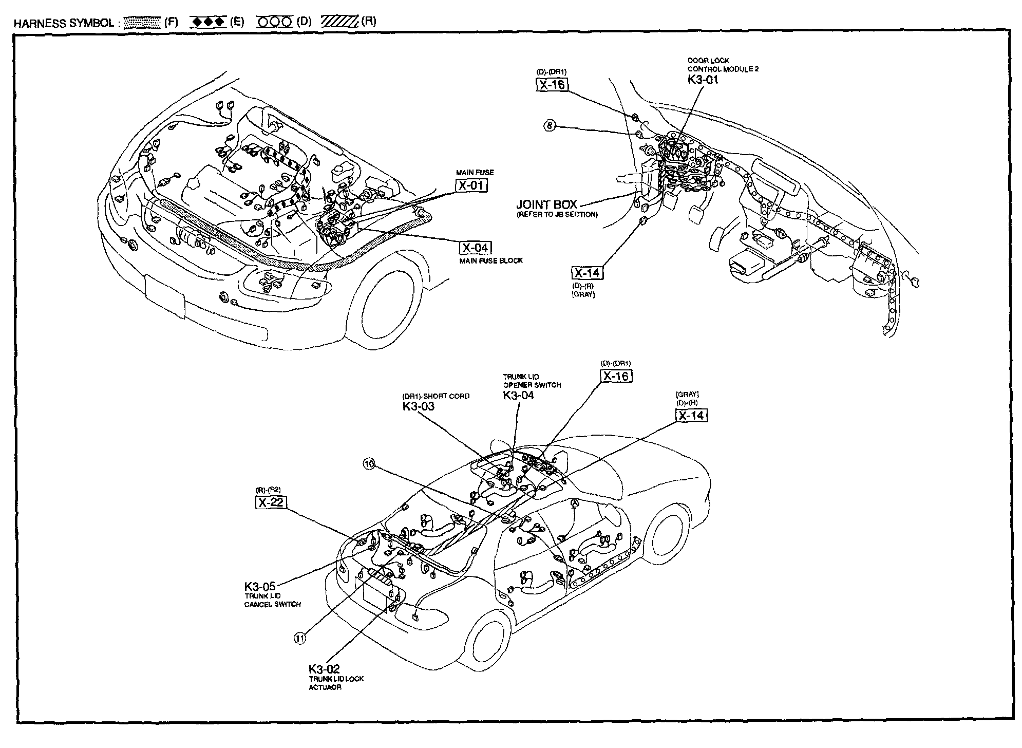 K-3 - Trunk Lock System Harness / Connector Symbols: