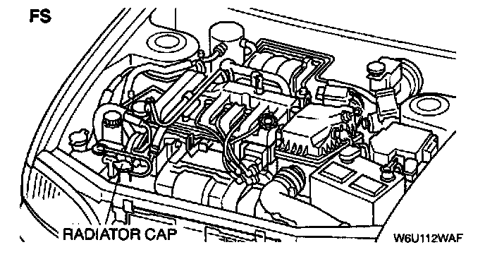 1. Remove the radiator cap (FS) or coolant filler cap (KL).