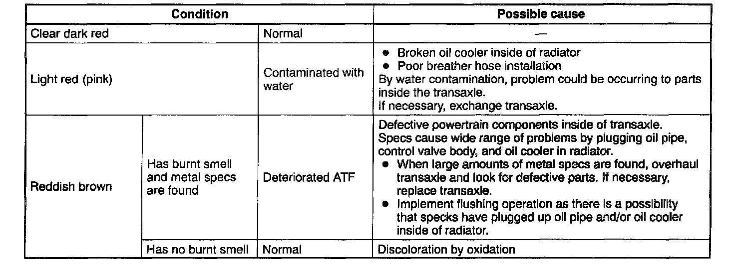 ATF Condition InspectionOne way of determining whether the transaxle should be disassembled is by noting:
