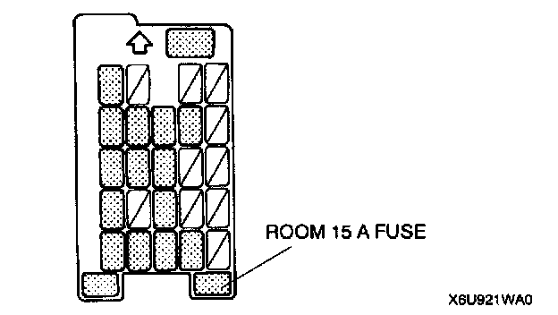 NOTE: When the ROOM fuse is burnt or removed, the malfunction indicator lamp illuminates. If the ROOM fuse is replaced or installed with the ignition switch at ON, the malfunction indicator lamp will continue to illuminate.1. Turn the ignition switch to LOCK.