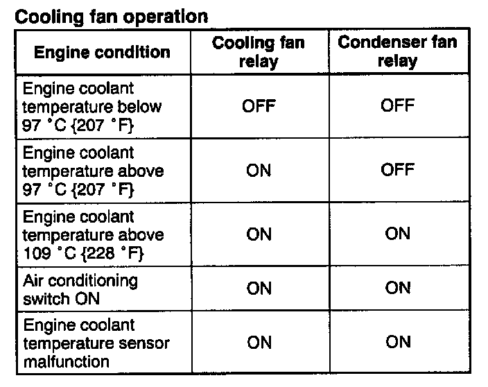 3. If operational sound is heard, check cooling fan relay and open circuit in wiring harnesses and connectors.