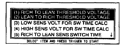 7. Select RICH TO LEAN THRESHOLD VOLTAGE or LEAN TO RICH THRESHOLD VOLTAGE.