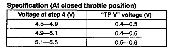 7. When the throttle valve is at the wide open throttle, verify that the "TP V" voltage is in the specification.