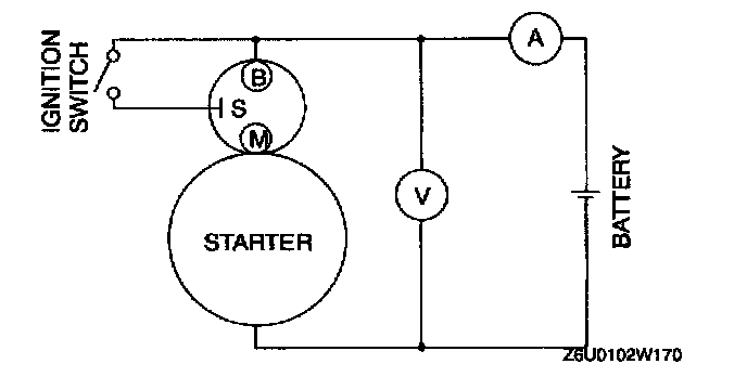 - If the voltage is within the specification, remove the starter and inspect the magnetic switch and the starter.