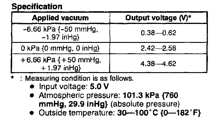 NOTE: The following vacuum values are indicated by relative pressure from atmospheric pressure.1. Disconnect the PCM connector.