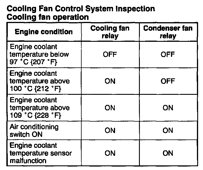 3. If the operational sound is heard, check the cooling fan relay and open circuit in wiring harnesses and connectors.