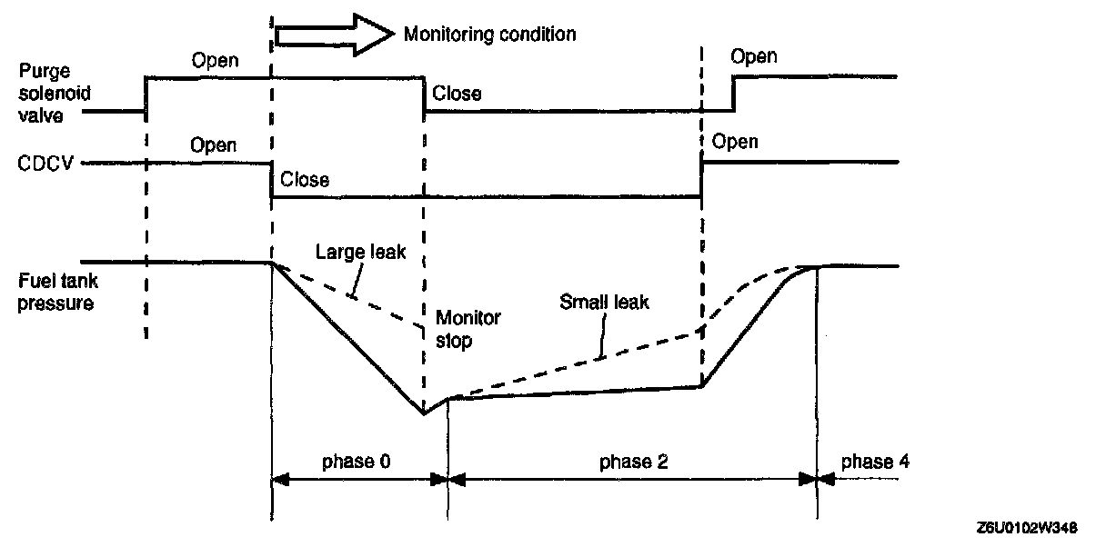 - Fuel tank pressure will change as follows during monitoring.